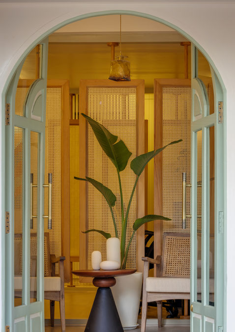 Situated on the bustling Siolim-Marna road this space demanded a moody and luxurious setting, breaking away from traditional design blends. Rich wood tones paired with deep, moody greens create a sophisticated atmosphere, seamlessly integrating the natural beauty of the surrounding greenery. The result is a space that exudes elegance while staying connected to its environment.